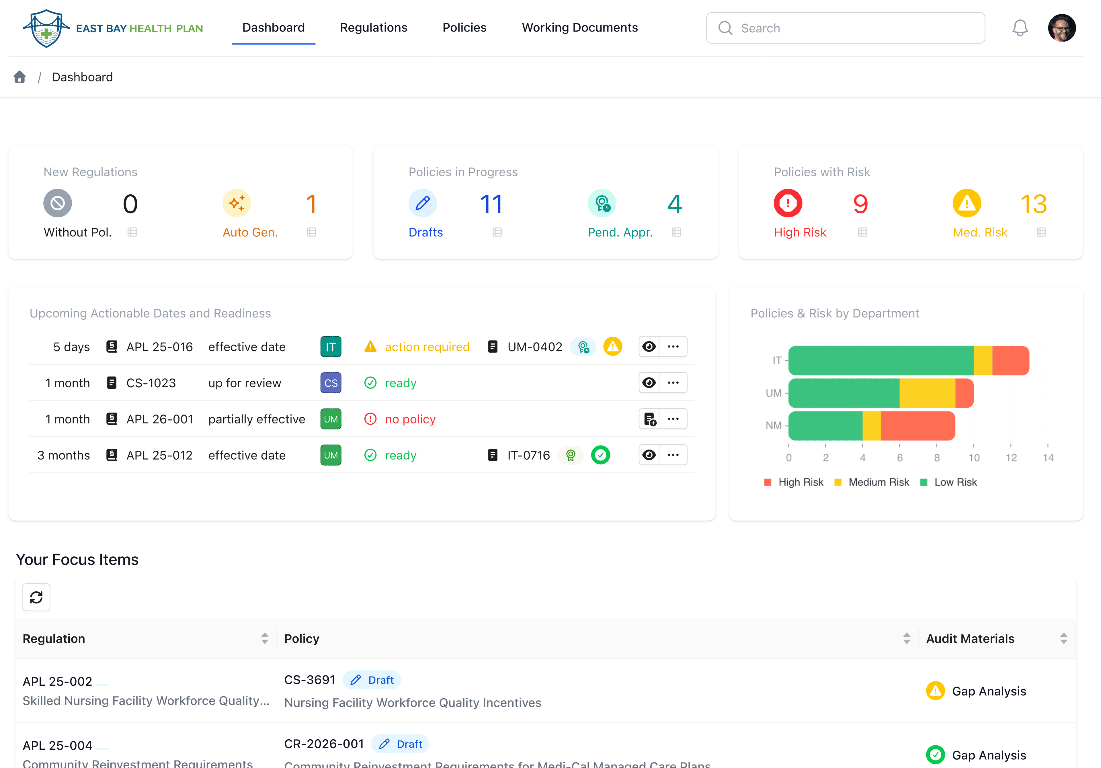 Our goal is to ensure that all regulations are accounted for and your policies are up to date. Have all documents at your fingertips and query them effortlessly.